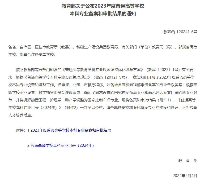 近日,教育部公布了2023年度普通高等学校本科专业备案和审批结果,我校申报的人工智能、数学与应用数学、材料物理、环境科学4个本科专业成功获批。