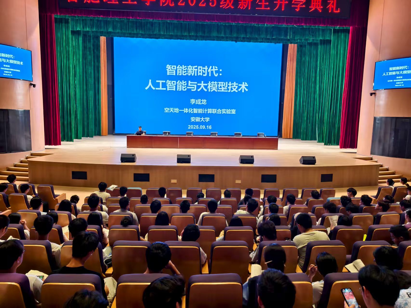 9月16日《人工智能导论》第二次课程由安徽大学空天地一体化智能计算联合实验室的李成龙教授开讲,他为新生带来以“智能新时代:人工智能与大模型技术”为主题的授课,带领大一新生走进人工智能的奇妙世界。