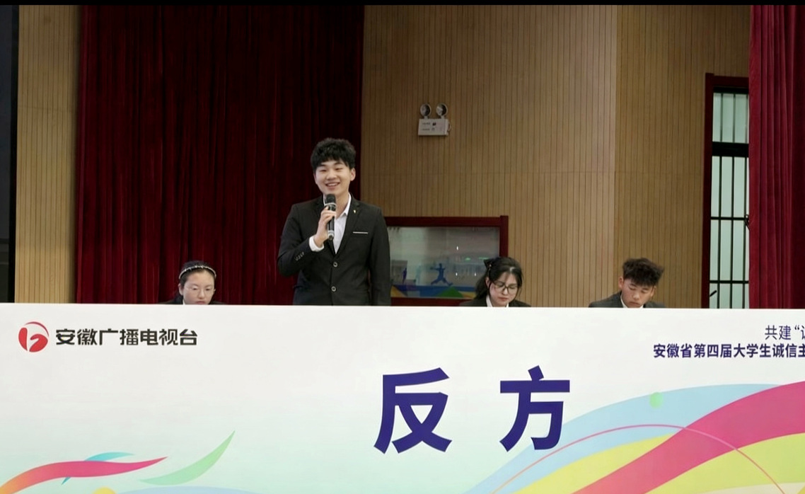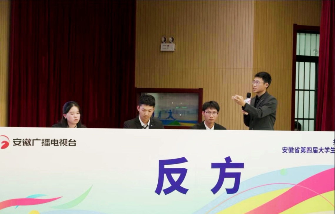 本次大赛由安徽省发展改革委、省教育厅联合主办,安徽广播电视台承办,吸引了全省多所高校参与。在比赛中,李明阳、朱佳妮同学围绕“AI生成内容在带来工作便利的同时,技术发展与隐私保护何者更重要”这一紧扣人工智能发展的时代辩题,发挥专业所学,结合技术伦理、数据安全与创新实践等多重维度,展开深入论述与敏捷交锋,展现出我院学子良好的逻辑思维、语言表达与跨学科综合素养。